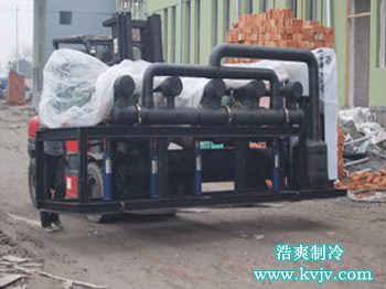 圖(左)為澳門豆撈冷庫配備的冷庫設(shè)備                                             圖(左)冷庫設(shè)備正在進場