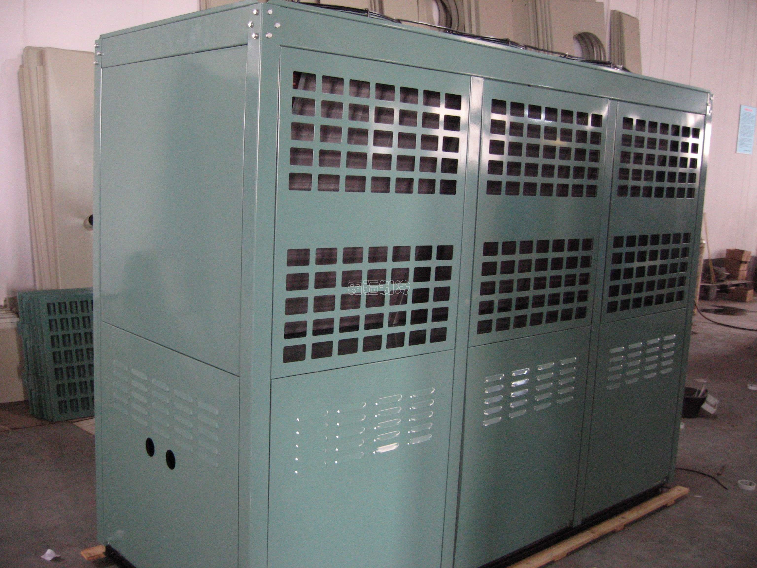 組裝形式:?jiǎn)蝹€(gè)壓縮機(jī)、冷凝器,儲(chǔ)液器、油分離器集成在一個(gè)相對(duì)封閉箱式空間內(nèi),有